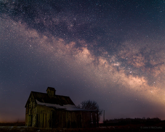 I like old barns like this one in Central Illinois. I've taken photographs of it many times, but given my love of the night sky this is my favorite. In this landscape image, I took the barn's portrait in natural starlight - and some LONG exposures! I love the way the barn nestles under the arc of starlight.