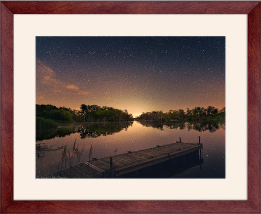 I knew I had to photography this area when I first saw Gridley Lake in the Jim Edgar Panther Creek State Fish and Wildlife Area. I was overjoyed to find the lake as a perfect mirror on this evening, allowing a beautiful reflection in the water for this landscape photography print. Alas, the mosquitoes also appreciated the lack of wind, and feasted well that night.